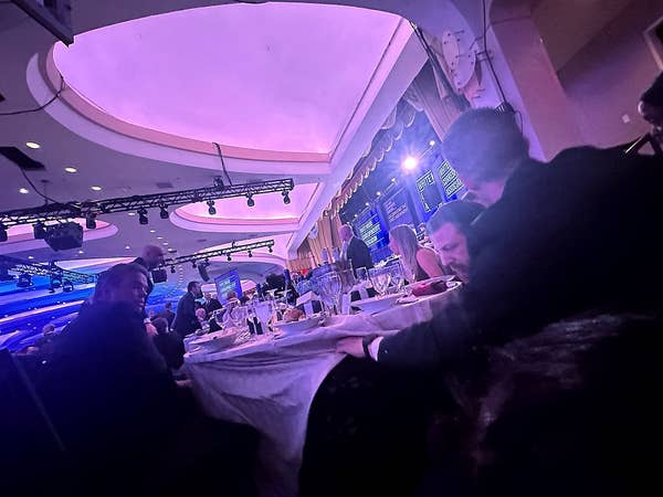 2. Podziękowania dla fotografów za uchwycenie intensywności nocy. To zdjęcie Nathana Howarda pokazuje gości w strojach formalnych, którzy natychmiast się chowają.