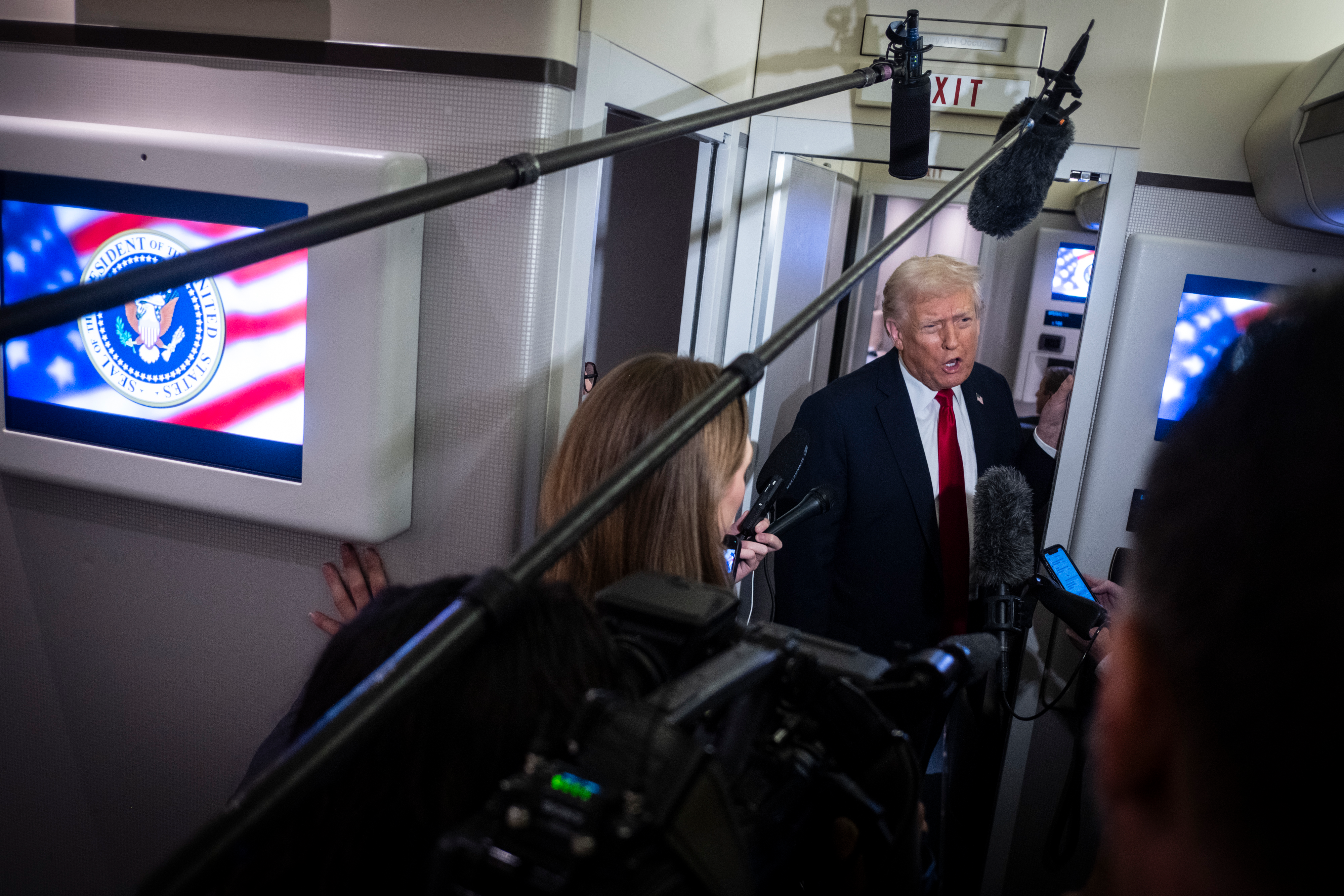 Trump na pokładzie Air Force One w drodze na Florydę stwierdził brutalnie: «Jeśli spojrzysz, jak wszystko się teraz rozwija, wszystko zmierza w tym samym kierunku. Więc ta ziemia i tak może trafić do Rosji za kilka miesięcy. Więc czego chcesz, chcesz walczyć i stracić kolejne 50-60 tysięcy ludzi? A może chcesz coś zrobić teraz?» Prezydent podkreślił: «Ich głównym ustępstwem jest zaprzestanie działań wojennych i to, iż nie przejmują kolejnych terenów».