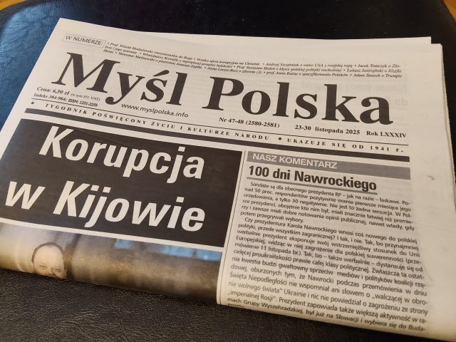 Polska. Wyszedł nowy numer „Myśli Polskiej” (47-48, 23-30.11.2025). Znajdą państwo w nim między innymi materiały dotyczące korupcji na Ukrainie. W bieżącym numerze prof. Stanisław Bieleń pisze o „Bilansie polityki wschodniej”, Mariusz K. Pomianowski o „Fetyszu Zachodu: Kontroli”, zaś Michał Radzikowski o Mieczysławie Moczarze.