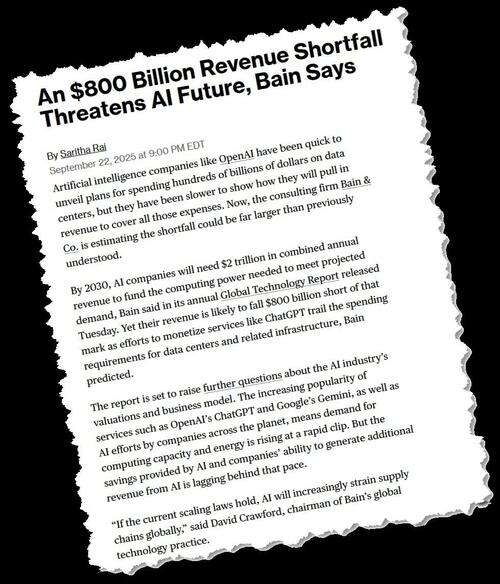 Keep in mind nowhere in the above analysis did we touch on the absolutely staggering funding needs to reboot America’s ancient power grid which is woefully insufficient and inadequate to fire up the dozens of data centers which will be needed across the country in as little as 3-4 years if any of the stratospheric AI revenue projections are to come true…