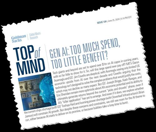 The first time the AI sector was rocked over fears of low/zero ROI, and gargantuan cash burn with nothing to show for it, was June 2024, when Goldman asked point blank if Gen AI was nothing more than „too much spend, too little benefit.” i.e., a giant capital drain that will never lead to positive long-term returns for investors.